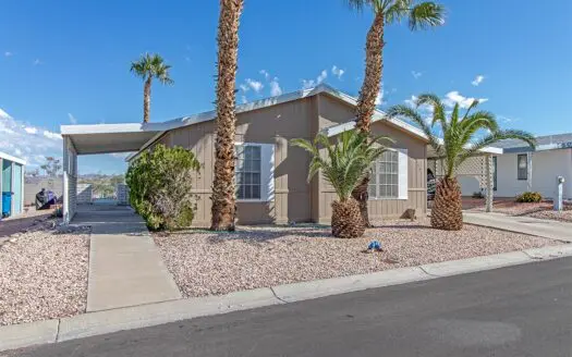 This beautiful manufactured home is for sale in Mountain View – a highly desirable 55+ gated mobile home community in Henderson, Nevada. Located at 144 LeArta Dr., Henderson, NV 89074, this 1298 sq. ft. mobile home offers comfortable, low-maintenance living in Clark County’s most in-demand 55+ manufactured home community.